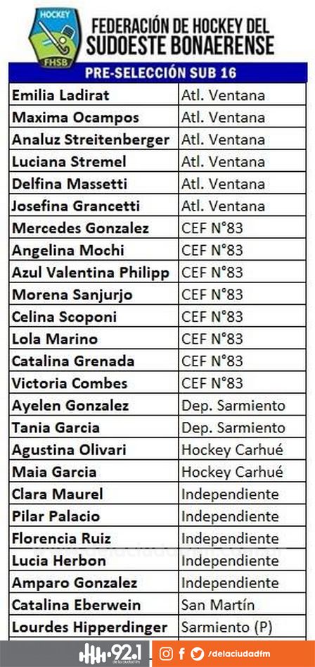 La Federación de Hockey del Sudoeste Bonaerense presentó un detalle con el cronograma de los cotejos previstos para las chicas este sábado.