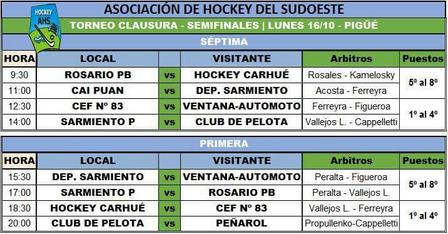 En las semifinales por los puestos 5° al 8°, Hockey Carhué venció 2 a 0 a Rosario PB y CAI Puan hizo lo propio ante Sarmiento de Carhué por 1 a 0 y ambos jugarán la final por el 5°.