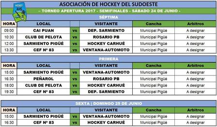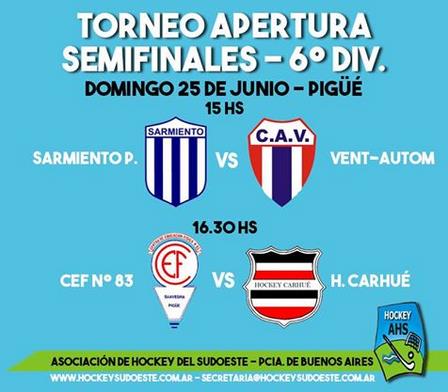Este domingo CEF Nº 83, Ventana-Automoto, Hockey Carhué y Sarmiento de Pigüé buscarán llegar a la final del Torneo de Sexta división.