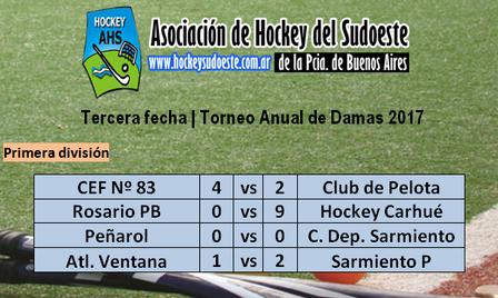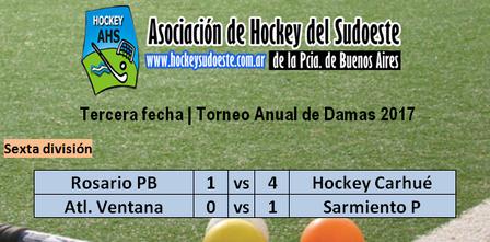 Hockey Carhué le ganó a Rosario, Peñarol igualó con el Club Deportivo Sarmiento, y Sarmiento se impuso sobre Atlético Ventana.