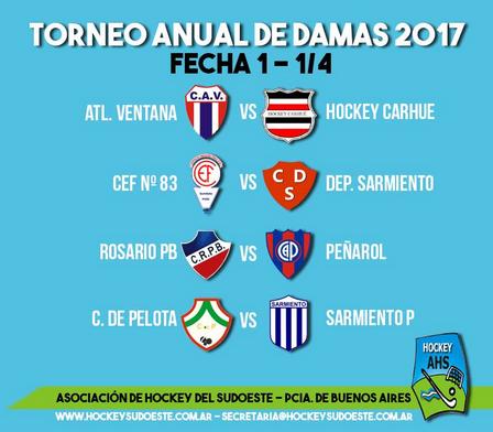El portal de la Asociación de Hockey del Sudoeste señala que “quedó definido el formato de disputa del Torneo Anual de Damas 2017 de las divisiones Primera, Sexta y Séptima de la AHS, que dará inicio este sábado 1 de abril.