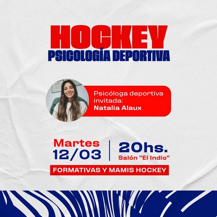 Orientada a quienes practican la disciplina de hockey en la institución azulgrana esta disertación se llevará a cabo a cargo de la Lic. Natalia Alaux.
