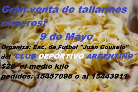 El sábado la Escuelita del Deportivo Argentino venderá tallarines caseros