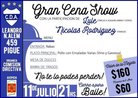 La cena show se hará en la Sede Social del Club Deportivo Argentino.