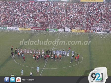 El árbitro Pedro Argañaraz suspendió el partido, por falta de seguridad, en el segundo tiempo.