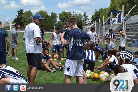 El Club Sarmiento tuvo, primero, una charla con sus jugadores de los planteles mayores, y después desarrolló los movimientos físicos iniciales.