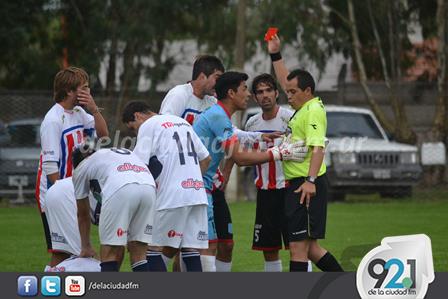 Al decretar el tiro libre, y el foul sobre el delantero de Argentino, el árbitro decretó la expulsión para Luciano Aqueveque.