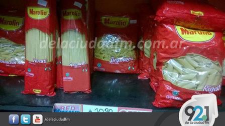 Los fideos Marolio cuestan 10.90 pesos en el local de calle Ciudad de Rodez 156 de Pigüé.