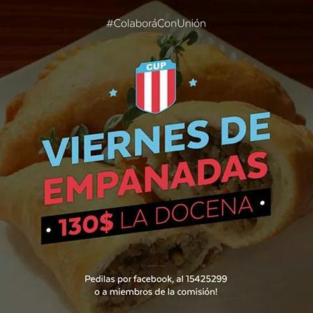 El vienes, en el Club Unión, estarán vendiendo empanadas de carne, por docena, a 130 pesos.