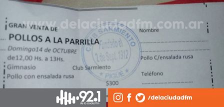 Este domingo, para el mediodía, la institución deportiva local estará realizando una venta de pollos asados con ensalada rusa a un valor de 300 pesos.