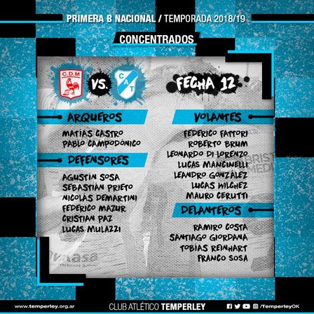 Temperley visitará hoy, domingo, al Club Deportivo Morón, en la Fecha 12 del Torneo de la B Nacional