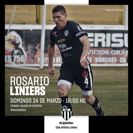 Facundo Lagrimal, con Liniers, por la Liga del Sur, jugará a las 16.00 horas.