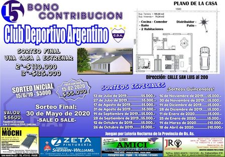 Una casa habitación con 2 dormitorios será el premio final previsto para el 2.020.