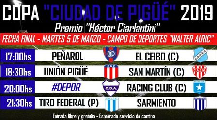 Por la Copa Ciudad de Pigüé, en la Zona B, el puntero es Racing con 5 unidades, seguido de San Martín de Carhué con 4, Sarmiento con tres, y Peñarol con la misma cantidad de unidades.