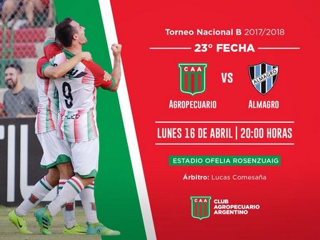 Martín Prost, con Agropecuario, espera por recibir a Almagro, por la Fecha 23 de la B Nacional, en el Estadio Ofelia Rosenzuaig de Carlos Casares.