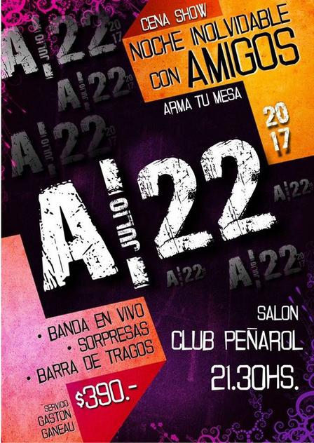 Se realizará la cena show del Día del Amigo, con un valor de 390 pesos la tarjeta, el sábado 22 de julio, a las 21.30 horas.