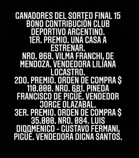 El Club Unión Pigüé realizó, a través de la Lotería Nocturna del sábado, este nuevo sorteo.
