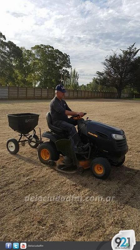 Comenzaron a resembrar con césped el sector ubicado en la zona trasera de las tribunas.