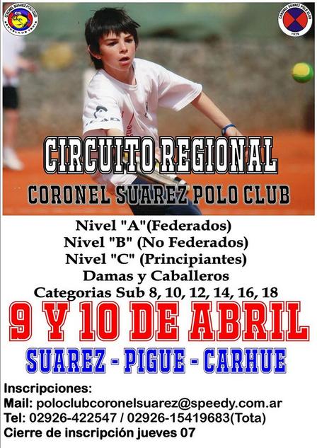 El fin de semana, en Coronel Suárez, el Polo Club prepara un nuevo encuentro por el Circuito Regional de Tenis.