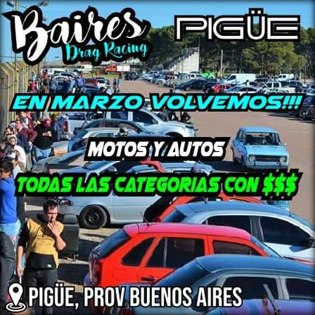 Baires Drag Racing se encuentra organizando una nueva presentación en el Autódromo de Pigüé.
