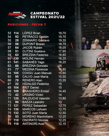 El piloto pigüense que se desenvuelve en Bahía Blanca viene anotándose en el puesto número sesenta y cuatro del certamen.