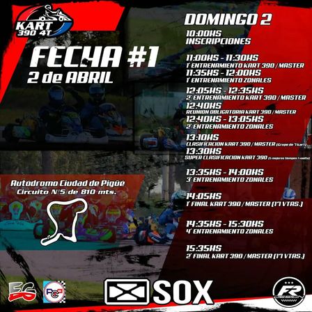 Se disputará la fecha inicial de los Kartings 390 centímetros cúbicos y de la categoría Master desarrollándose también pruebas para varios pilotos de las categorías zonales.