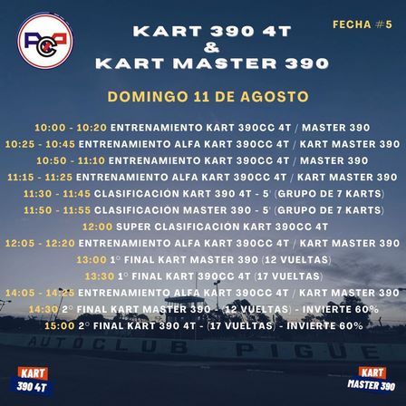 Las finales del domingo están siendo programadas, en el Auto Club Pigüé, a partir de las 13.00 horas del día domingo 11 de agosto de 2024.
