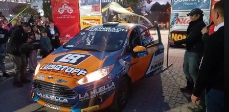 El piloto pigüense que con su Ford Fiesta Kinetic viene de ganar la competencia anterior, en Zapala, realizó hace instantes la largada simbólica en Chos Malal.