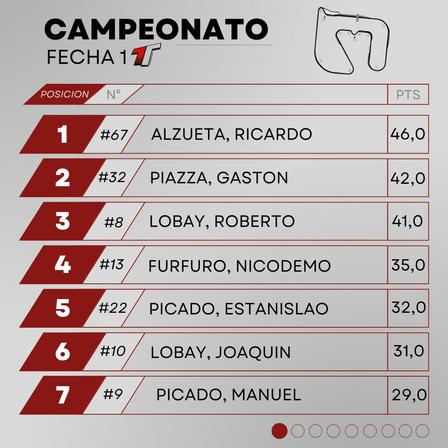 Las ubicaciones, en la tabla de posiciones, tras la primera fecha de los seis cilindros, son las siguientes: