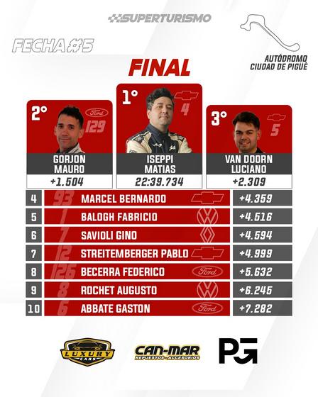 Los resultados oficiales de la final del SuperTurismo, en el Autódromo Ciudad de Pigüé, fueron los siguientes: