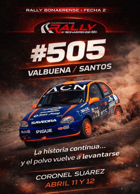 El binomio del Distrito de Saavedra confirmó su próxima incursión en la segunda fecha del Campeonato 2026 del Rally del Sudoeste Bonaerense.