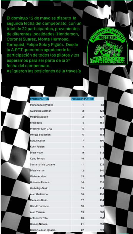 Ignacio Furch, luego de competir en San Cayetano, indicó “pudimos llegar en un octavo puesto que, el objetivo de ver la bandera a cuadros siempre es importante, y venir con todo sano también”.