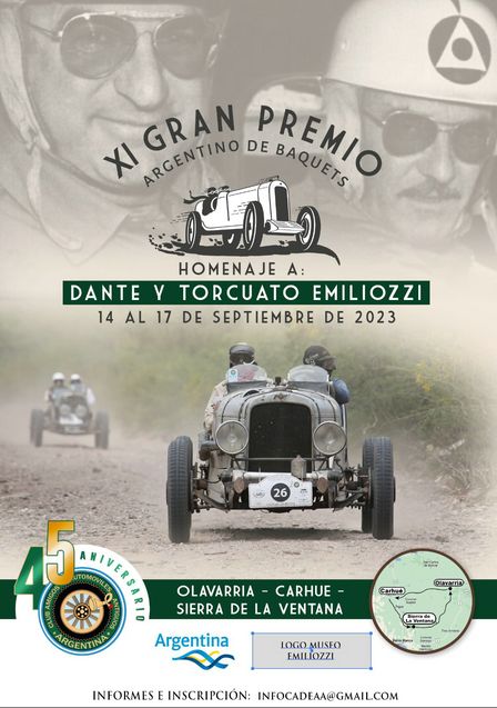 El Homenaje a Dante y Torcuato Emiliozzi se desarrollará desde el 14 al 17 de septiembre uniendo Olavarría, Carhué, y Sierra de la Ventana con paso por el predio del Aero Club de Pigüé.