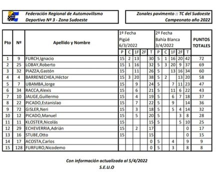 Ignacio Furch, que viene de ser el último ganador en el TC del Sudoeste, comentó “el auto está casi listo, Costanzo está banqueando el motor para colocarlo, y llevarlo a Pigüé”.