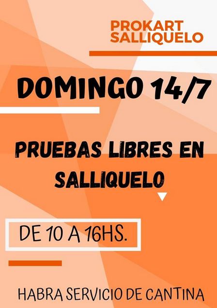 El sábado 27 y el domingo 28 de julio se disputarán carreras correspondientes al certamen del Prokart Salliqueló.