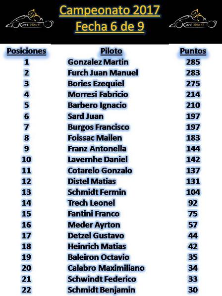 Luego de la fecha disputada en el kartódromo local el piloto pigüense es el puntero con 285 unidades.