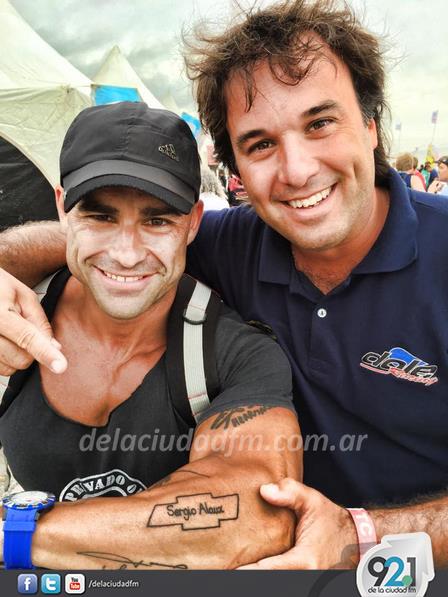 El seguidor del pigüense mostró, junto al piloto del TC y TC Mouras, la imagen en su brazo.