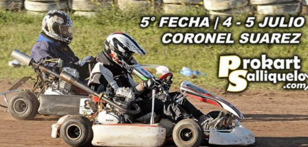Tras una jornada muy fría y ventosa, el Prokart Salliqueló disputó de manera parcial la 5° Fecha en la ciudad de Coronel Suarez. En un principio el cronograma se demoraba luego de que los integrantes del Automoto Club dejaran en condiciones óptimas la pista.