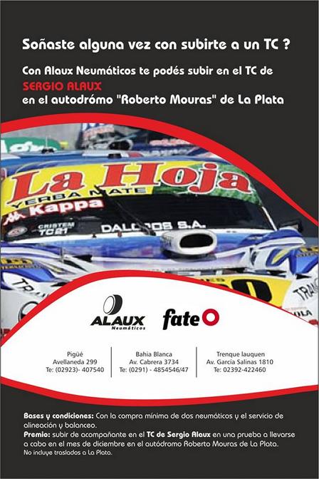 En este caso, la "promo" se realizó en el local comercial Alaux Neumáticos, hasta donde llegaron fanáticos y medios locales para tomar contacto con el piloto Sergio Alaux.