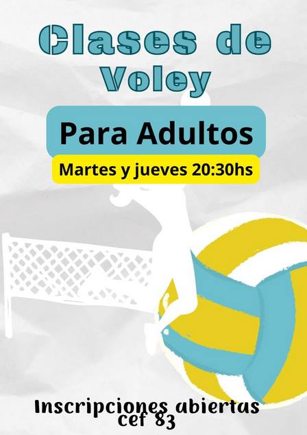 Los días martes y jueves, a partir de las 20.30 horas, se llevarán a cabo las clases de vóley para adultos en el Gimnasio Claudio De Pietro del Centro de Educación Física Número 83.