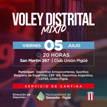 Este Torneo Distrital de Voley Mixto arranca el viernes, a las 20.00 horas, en el Gimnasio Centenario de calle San Martín 267 de Pigüé.