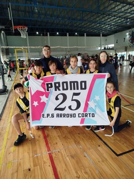 Representando a la Escuela Primaria Número 6 Nuestra Señora del Carmen los jugadores del equipo de vóley dirigidos por el Profesor Ernesto Villalba continúan con su actividad en instantes.