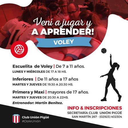 Siguen sumando a quienes quieran incorporarse a las distintas categorías de voley en el Club Unión Pigüé.