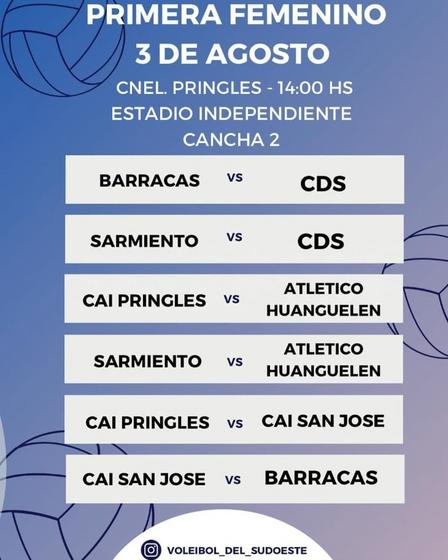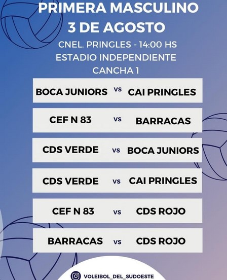 Estos cotejos se desarrollan en el marco del Torneo de la Asociación de Voley del Sudoeste Bonaerense.