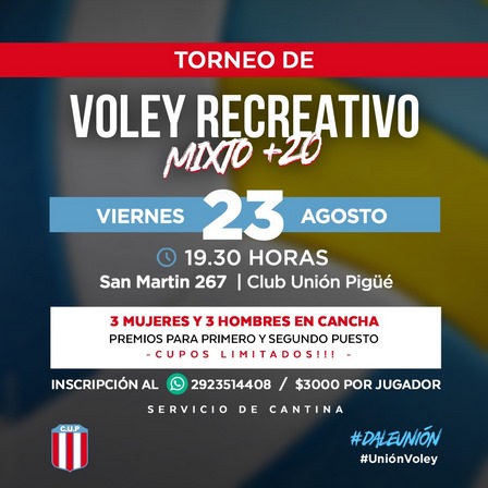 Club Unión Pigüé inscribe para un Torneo Recreativo Mixto +20