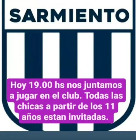 Club Sarmiento tiene entrenamientos los días lunes, miércoles, y viernes, desde las 18.00 hasta las 21.00 horas.