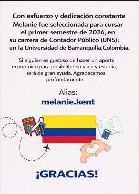 Dan un alias, que es melanie.kent, para realizar aportes que le permitan viajar a desarrollar esta formación en Colombia.
