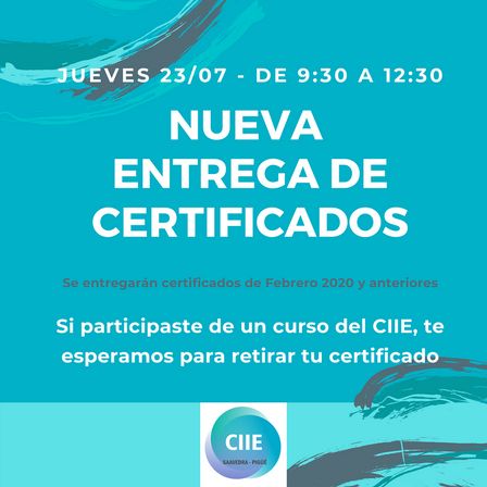 El Centro de Información e Investigación Educativa con sede en Pigüé estará desarrollando esta entrega para los cursos dados en febrero de 2020 y con anterioridad a esa fecha.