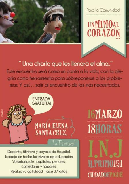 Este fin de semana, en el Colegio Niño Jesús, estarán presentando una charla titulada 'Un mimo al corazón'.