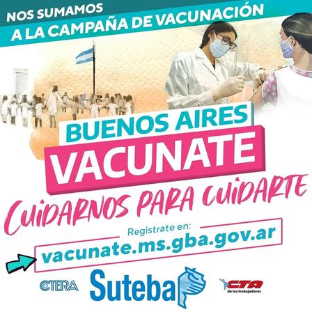 SUTEBA, junto a CTERA, y la CTA, está adhiriendo a la campaña de vacunación anti Covid19.